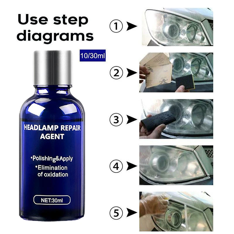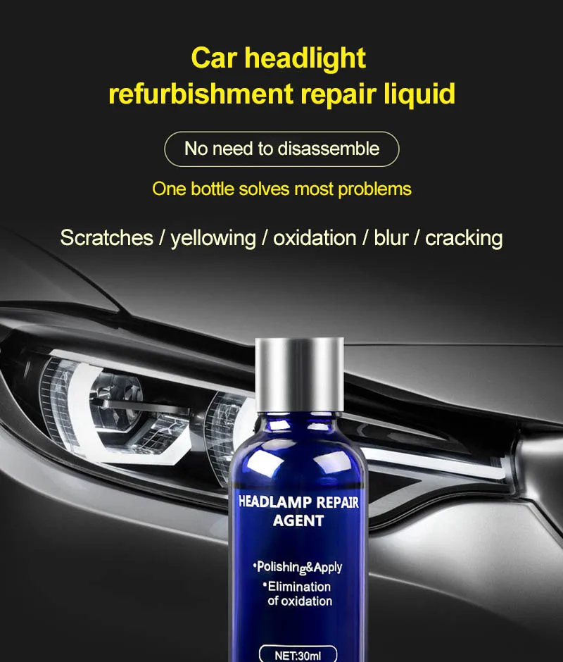 * Восстановите тусклые и облачные линзы ваших автомобильных фар и Увеличьте безопасность во время вождения ночью с помощью совершенно новой жидкости для ремонта автомобильных фар.