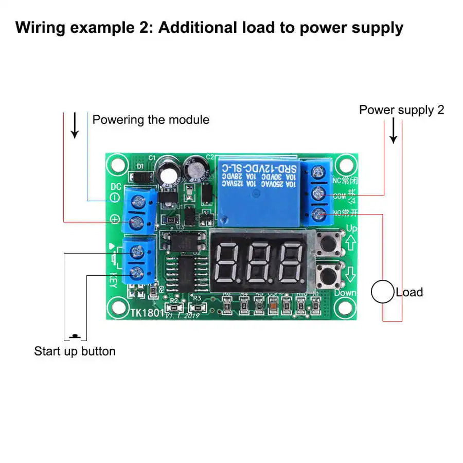 1. Запуск задержки после запуска, реле будет включено немедленно, и реле будет выключено после окончания обратного отсчета.Параметры:
