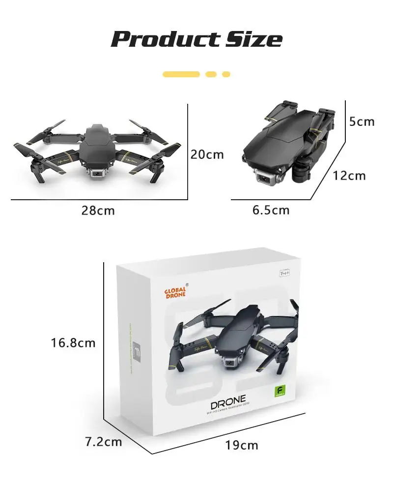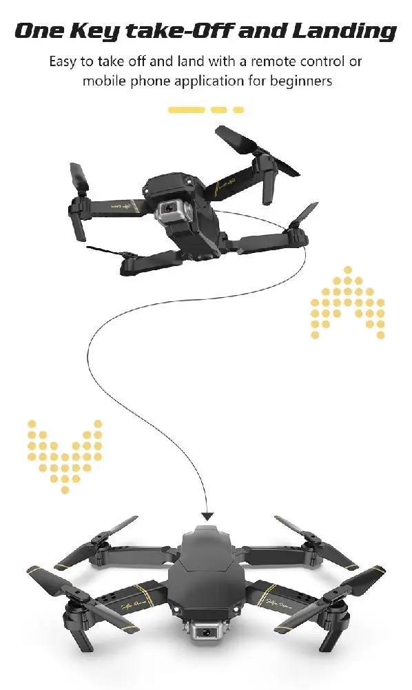 Функции: передача Wi-Fi карты, фиксированная высота, Безголовый режим, вперед и назад, левая и правая сторона летит, восходящий и нисходящий, левый и правый рулевое управление, тонкая настройка направления, одна кнопка Выкл, одно касание посадки, опрокидывание, быстрое и медленное преобразование передач, горизонтальная коррекция, безголовая коррекция режима, Внешний 8 Пуск/остановка, Аварийная остановка, защита от застревания 2 - 3 секунды, мобильный телефон, камера и видео, мобильный телефон, экран вперед и назад, гравитационное зондирование, функция VR