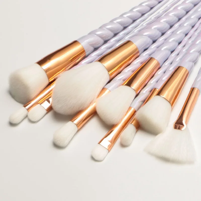 10 шт., белый набор кистей для макияжа с единорогом Maquiagem, косметическая пудра, румяна, тени для век, женская красота, блестящая кисточка для макияжа