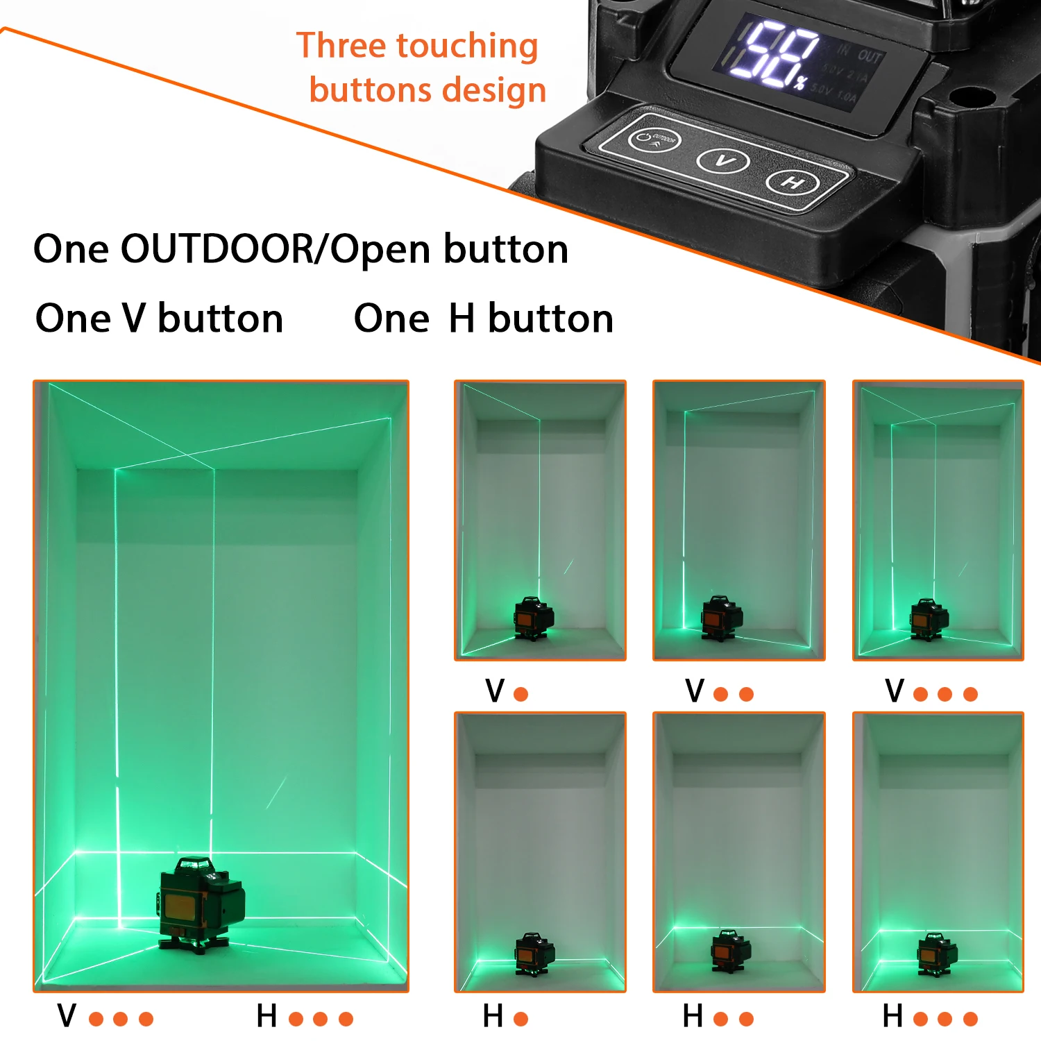 Это своего рода инструмент высокого качества, 4D 16 линий для более точного позиционирования, с самовыравнивающейся системой, гибкостью и стабильностью. С вертикальными и горизонтальными лазерными линиями, удобство использования. Он идеально подходит для различных применений, включая настил, планировку плитки, обшивку панелей, поклейку обоев, трафарет, обшивку, отделку столярных работ, планировку стен и установку перегородок. Вы можете попробовать.
