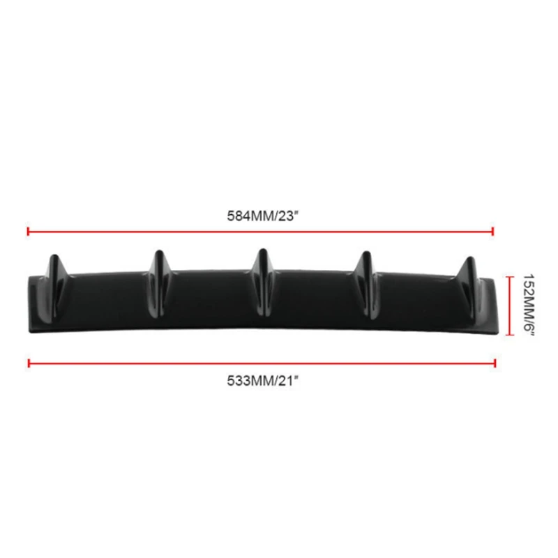 Hot 58.4x15.2Cm Style Universal Rear Bumper Lip Diffuser 5 Fin Gloss Black Abs Car Diffuser Fin Shark Style