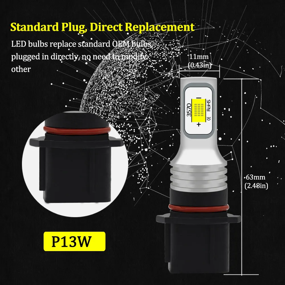 Этот вид ярких светодиодных ламп высокой мощности CSP 3570 заменит желтую галогенную лампу на складе, без ошибок заменяет светодиодный противотуманный светильник и DRL, чтобы дать вам скрытый вид, не заплатив премиальную цену за набор для преобразования HID.