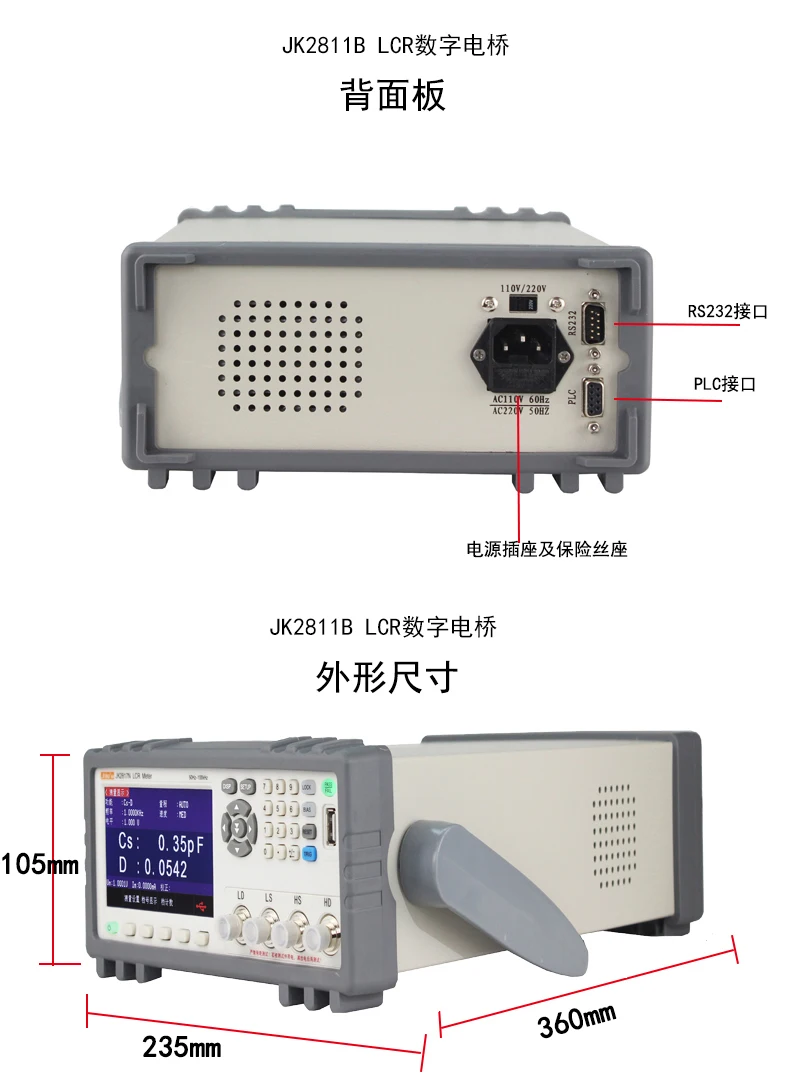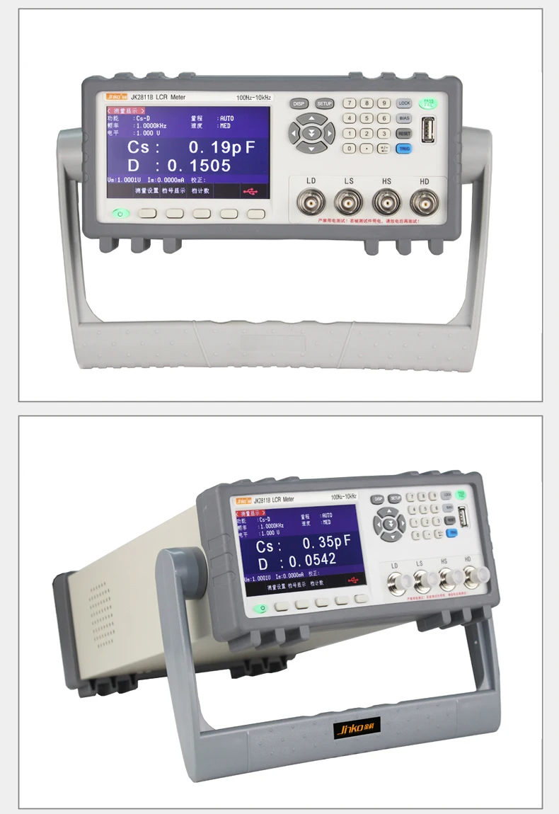 JK2811B LCR digital bridge is the latest development of the company's low-frequency component measurement of the replacement products, of which a number of components used to measure the latest technology, LCD display, easy operation, beautiful appearance. It can meet the needs of quality assurance, incoming inspection and automatic production. The RS232C interface can provide users with remote control and test data statistics and analysis.