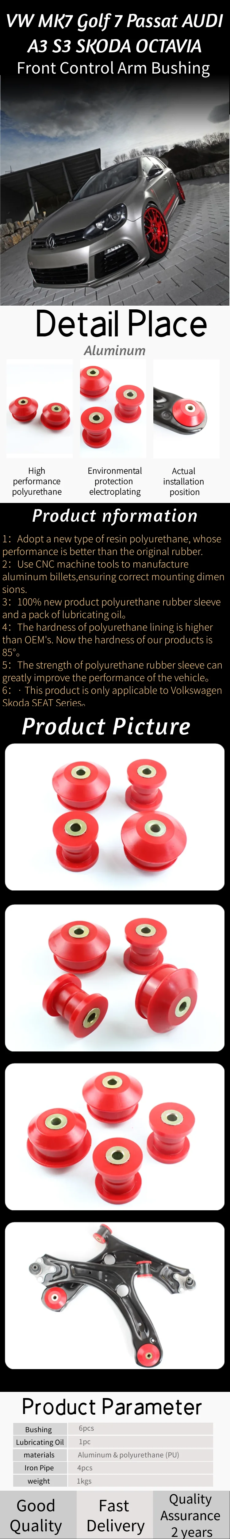 Control Arm Bushing For VW MK7 Golf 7 Passat AUDI A3 S3 SKODA OCTAVIA 12-20 Polyurethane Suspension Bushing