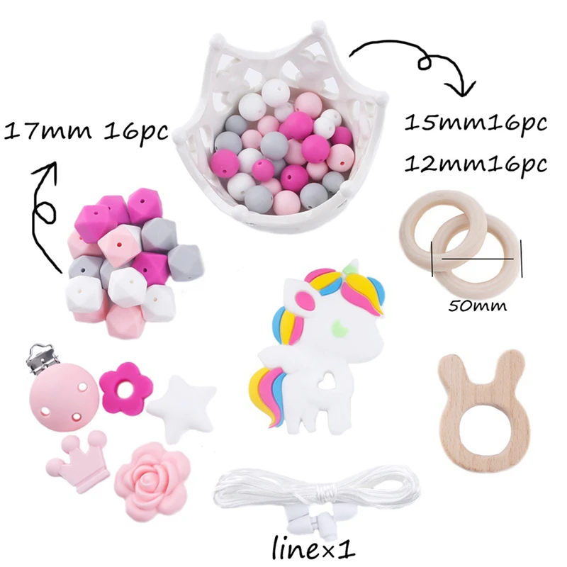 Материал: 1. FDA genehmigt 100% пищевой силикон/Holz. 2. BPA FREI 3. keine фталат 4. kein Blei 5. keine PVCs Reinigung Tipps: Bitte verwenden eine heißer handtuch zu wischen vor dem gebrauch. Nicht waschen mit wasser. Funktion: Silikon beißring für babys, so sie konnen erstellen schéne zahnen halsketten, machen pflege armbänder, schnuller clips, baby rasseln и т. д. Menge: 1 комплект