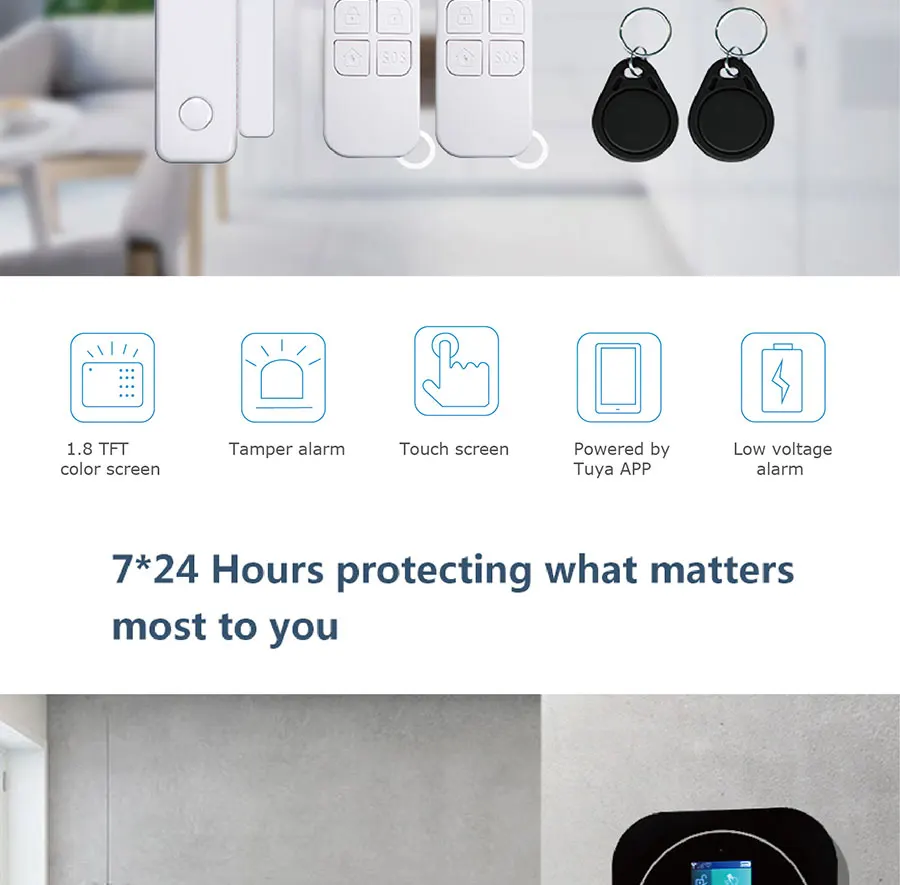 2020 Новая Беспроводная GSM сигнализация с сенсорной панелью, 2,4 ГГц, Wi-Fi tuya smart life APP, защита дома, 433 МГц, датчик двери, движения PIR