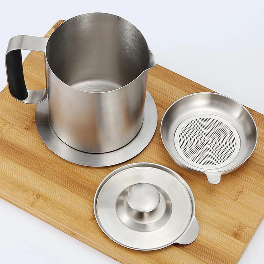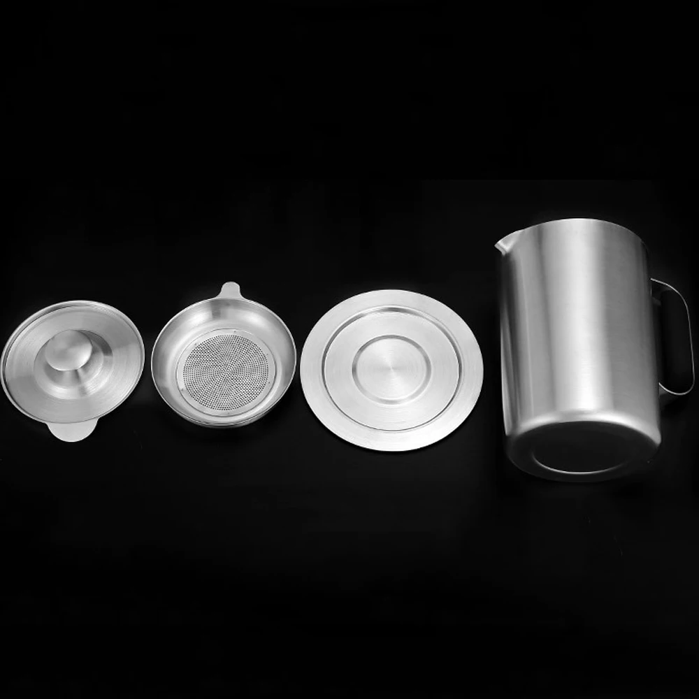 Нержавеющая сталь: изготовлена из нержавеющей стали с полировкой, прочная, некоррозионная и термостойкая характеристики, легко моется с водой или посудомоечной машиной Легкая заливка: уникальная конструкция из клюва предотвращает протекание с края горшка, удобно заливать внутреннее растительное масло или другую жидкость, когда вам это нужно Сетчатый фильтр: тонкая сетка из нержавеющей стали может фильтровать пищевую почву из кулинарного масла для утилизации, съемный дизайн удобный и портативный Крышка и ручка: съемная крышка может быть устойчива к коррозии, защищает внутреннюю жидкость, безопасна и безопасна; Удобно использовать с термостойкой и удобной ручкой Хранение: Емкость 1,0 литров достаточно на кухне, за исключением фильтрации почвы, горшок может работать в качестве контейнера для хранения кофе, чая, воды, сока и других напитков