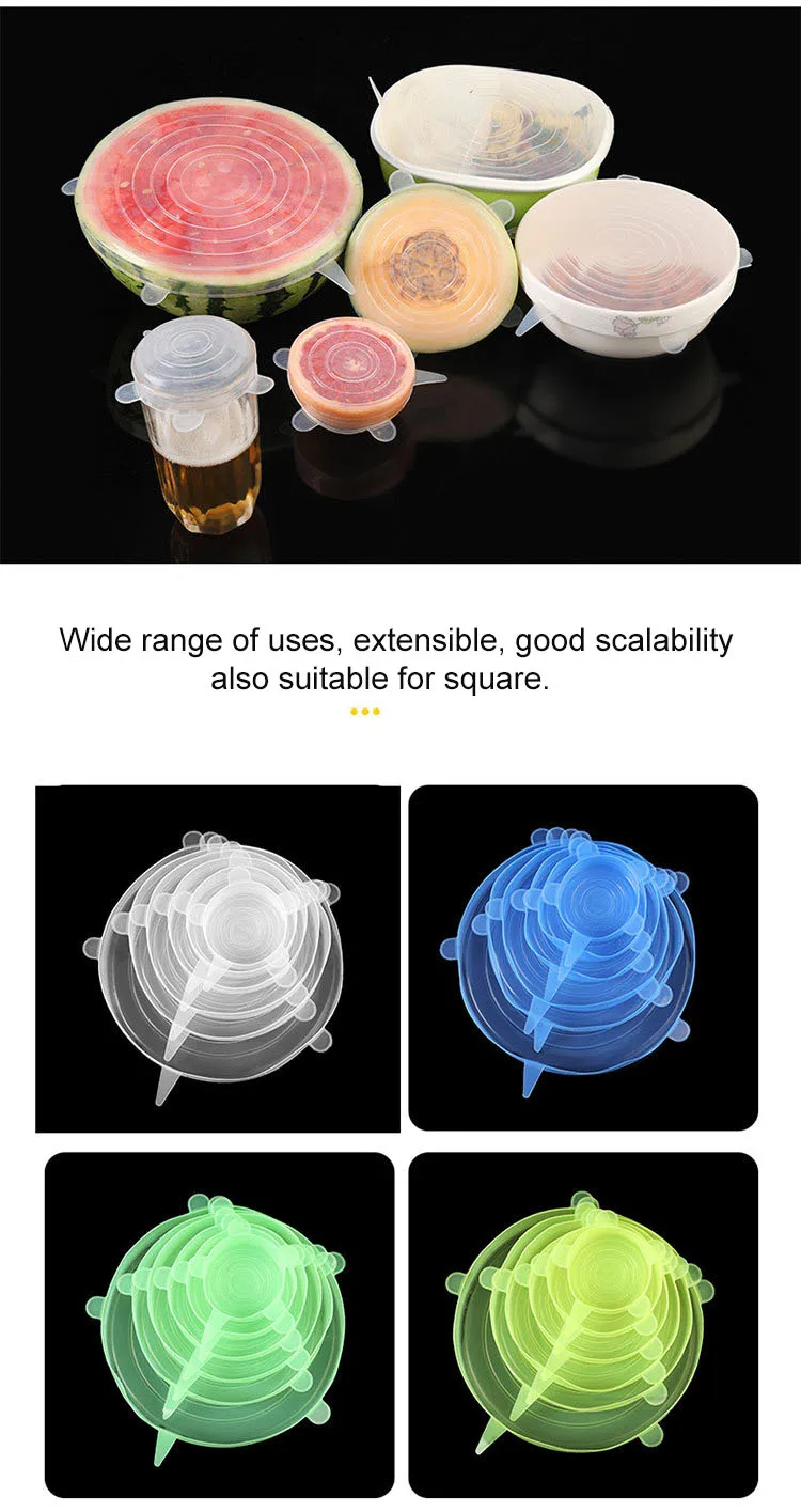 6Pcs Siliconen Vershoud Deksels Silicone Stretch Lids Universal Extensible Silicone Food Cover Seal Deksel Fresh-keeping Lids
