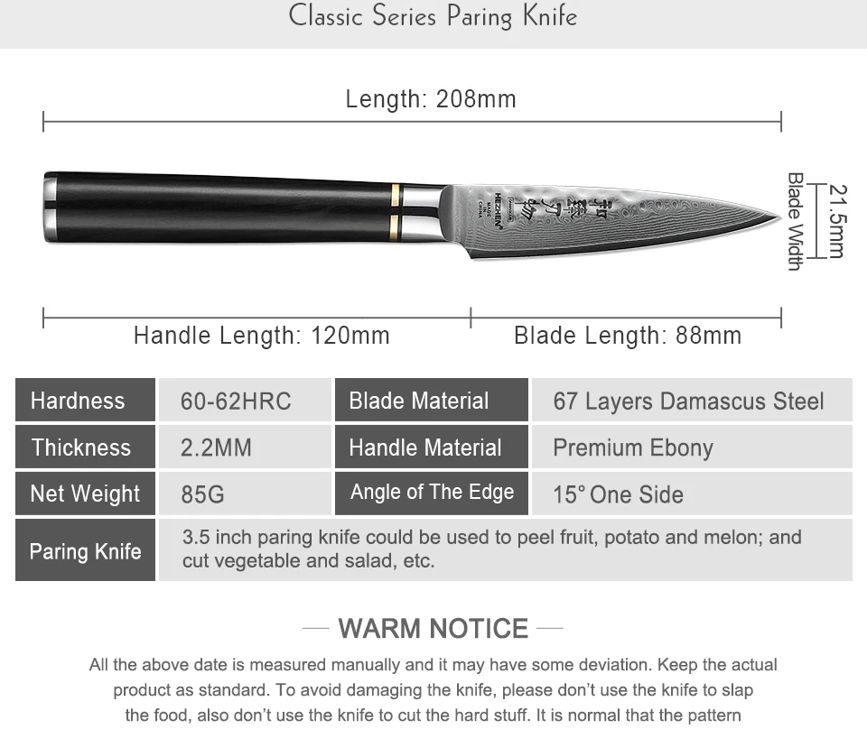 Hezhen классическийСерия дамасской стали нож для очистки овощей