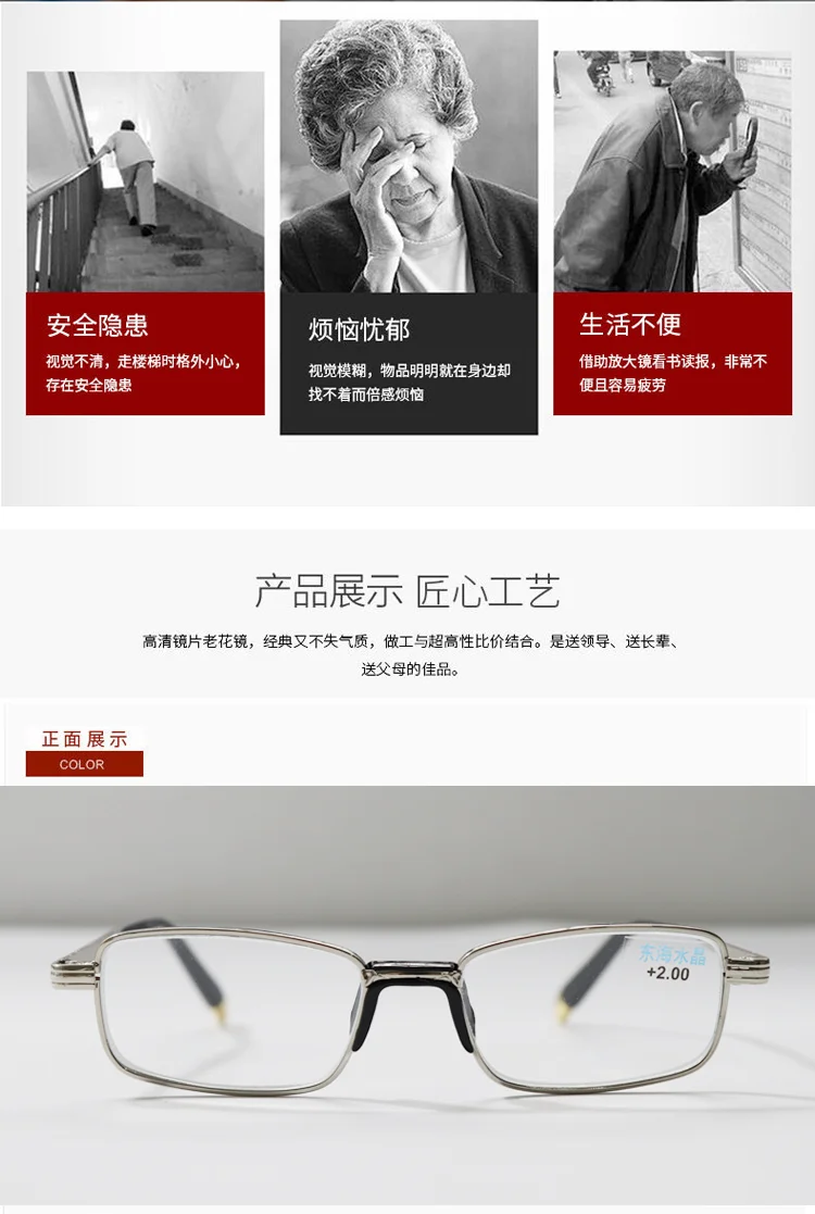 Очки для чтения из натурального хрустального стекла для мужчин, модные, антиусталостные, защита глаз для пожилых людей, очки из камня для женщин