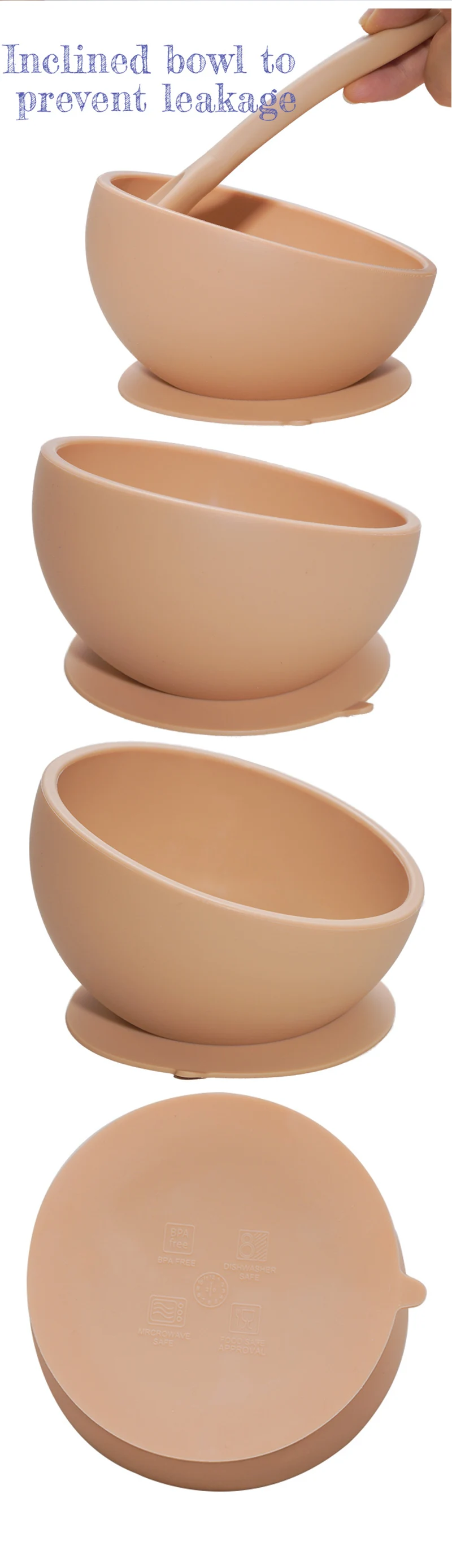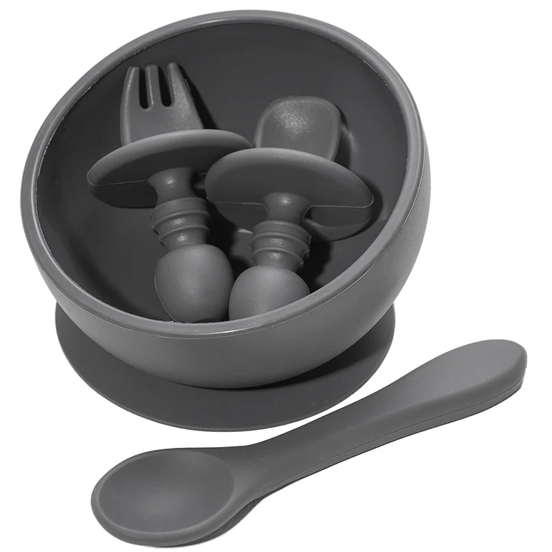 Детский Набор чашек для кормления, водонепроницаемая тарелка для ужина и мини-ложка, детская силиконовая посуда, герметичная миска для еды