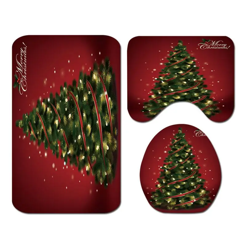 4 шт., базовый Коврик для ванной комнаты, красный Рождественский Декор, 3D цифровая печать, счастливый набор для душа, ванная занавеска для душа, туалетный коврик, напольный коврик