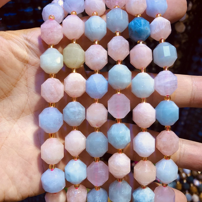 Оптовая продажа, Натуральные Бусы из морганита, много драгоценных камней, ручная резка, около 10 мм граненые круглые драгоценные камни бусины для ювелирных изделий, 1 нитка 15,5"