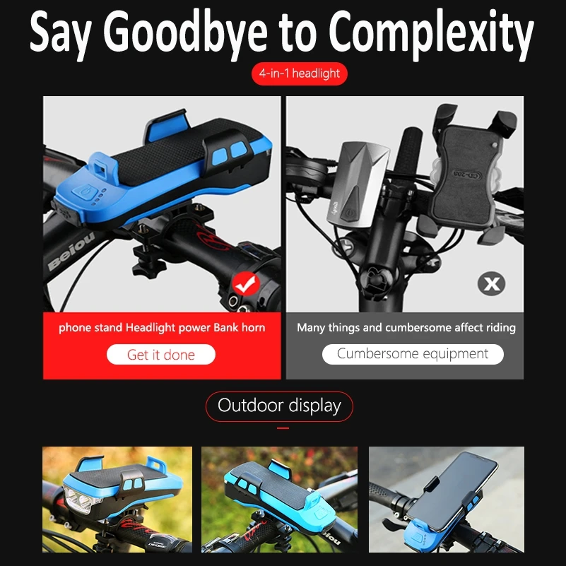 Держатель для телефона 4 в 1 для велосипеда, зарядное устройство, велосипедное освещение, MTB, руль для велосипеда, рог, колокольчик, светодиодная подсветка, подставка для телефона, кронштейн для iPhone
