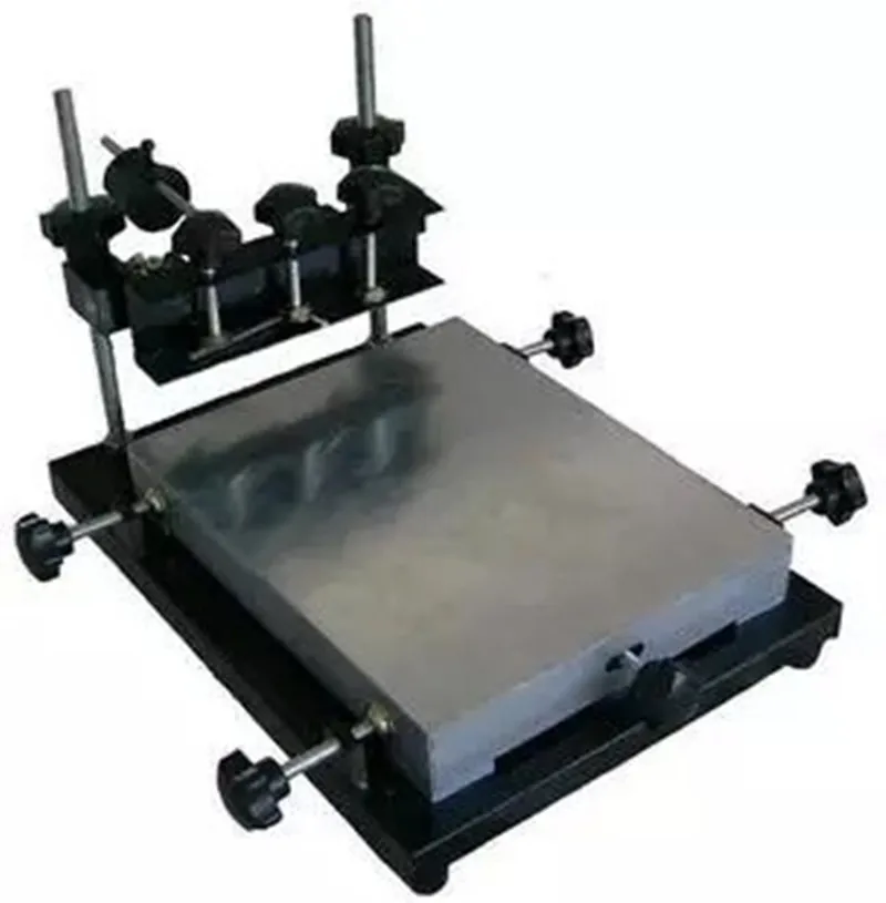 Ручной Трафаретный принтер Небольшой и удобный, особенно для пробного использования нового продукта, а также некоторых малообъемных фабрик электроники, производство множества разновидностей, доступный, простой в использовании, Необходим для производства небольших электронных инструментов. Особенности: Ручное руководство по эксплуатации Легко настраивается, точный и надежный. Ручной Трафаретный принтер может быть использован в нескольких спецификациях, подходит для всех размеров шелкографии с ручной печатью. Технические характеристики Рабочая зона: 440x320 мм; Вес: 10 кг; Высота: 0-120 мм регулируется; Лево-правое регулируемое: -10 ----- + 10 мм; Передняя-задняя Регулируемая: 0-10 мм;