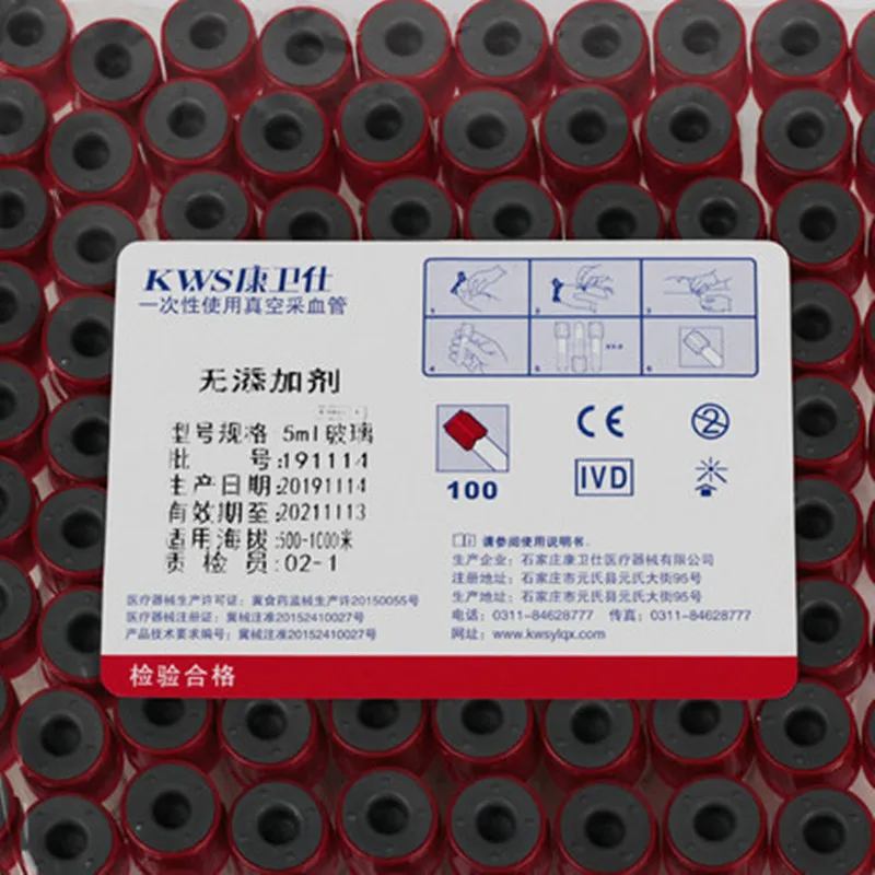 Обычная трубка: 5 мл 10 мл Диаметр: 5 мл: 12 мм 10 мл: 15 мм Высота: 10 см Материал: стекло Время свертывания крови: ≤ 2,5 ч Ограниченная Центробежная скорость: 3500-4000 об/мин