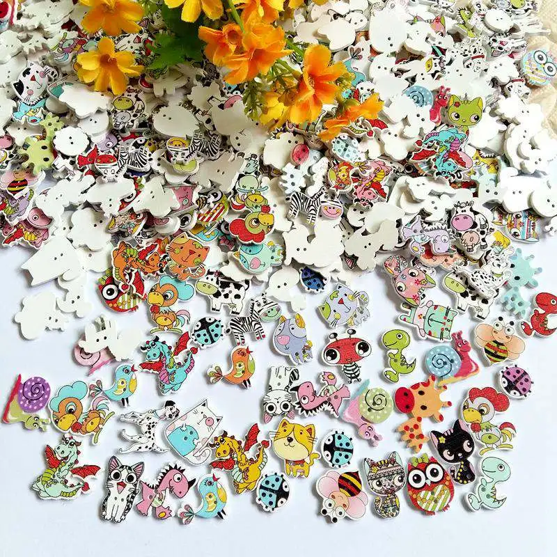50 шт. декоративные кнопки для рукоделия случайного смешивания мультяшных животных 2 отверстия для шитья, деревянные пуговицы аксессуары Кабошоны для скрапбукинга