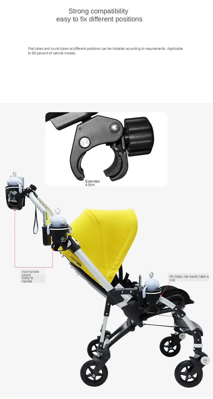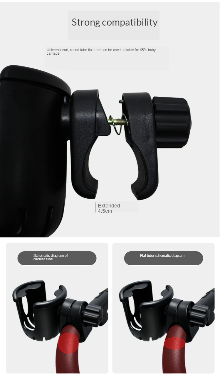 Эти четыре держателя чашек подходят для большинства колясок, Выберите тот, который подходит вам лучше в соответствии с вашими потребностями