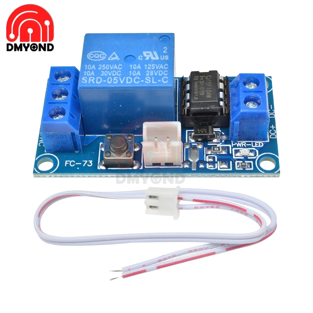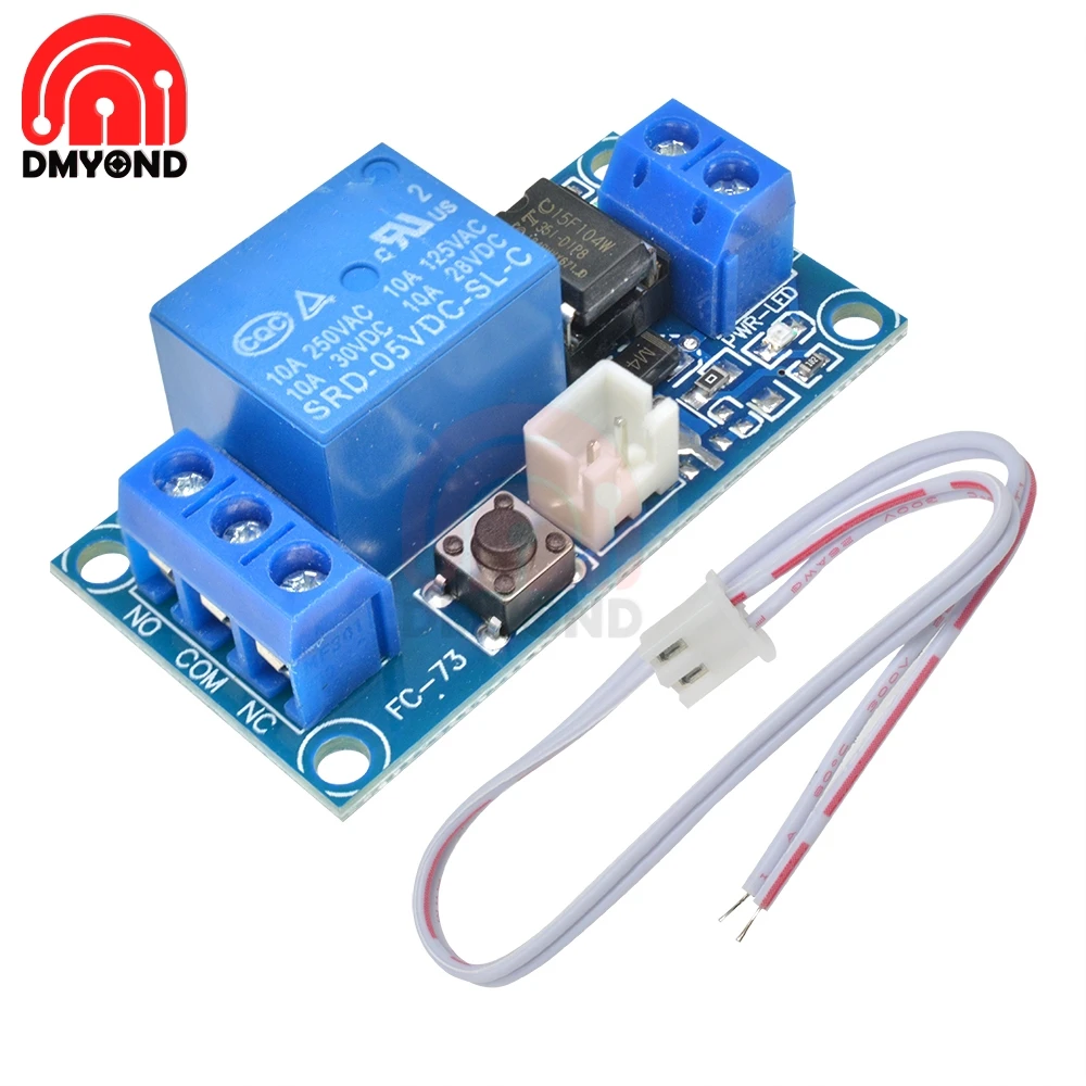 Нажмите кнопку триггера, реле заблокировано, нажмите его снова, реле закрывается, вы также можете добавить триггер и использовать низкий уровень триггера.