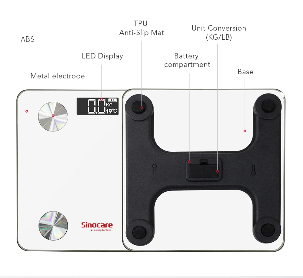 Bluetooth-весы SINOCARE оснащены четырьмя высокоточными датчиками и четырьмя электродами для обеспечения быстрого и точного анализа состава тела. Поверхность изготовлена из закаленного стекла 5 мм; Дно изготовлено из качественного АБС-пластика. Синхронизируется с вашими любимыми приложениями для фитнеса, приложение OKOK синхронизирует данные с приложением Apple Health и Fitbit!