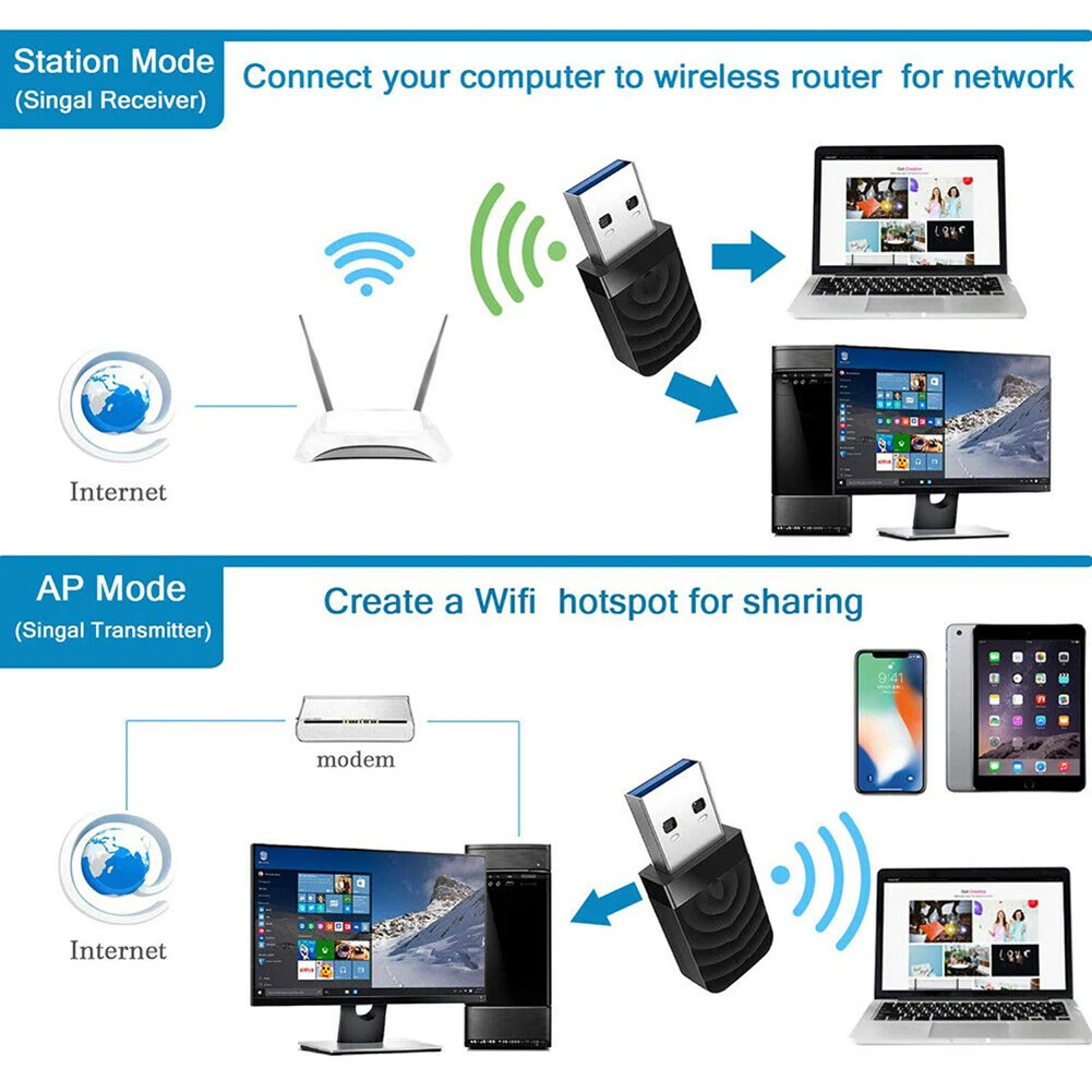 Беспроводной сетевой USB адаптер LAN Карта 1200 Мбит/с мини USB двухдиапазонный адаптер с драйверами CD для рабочего стола
