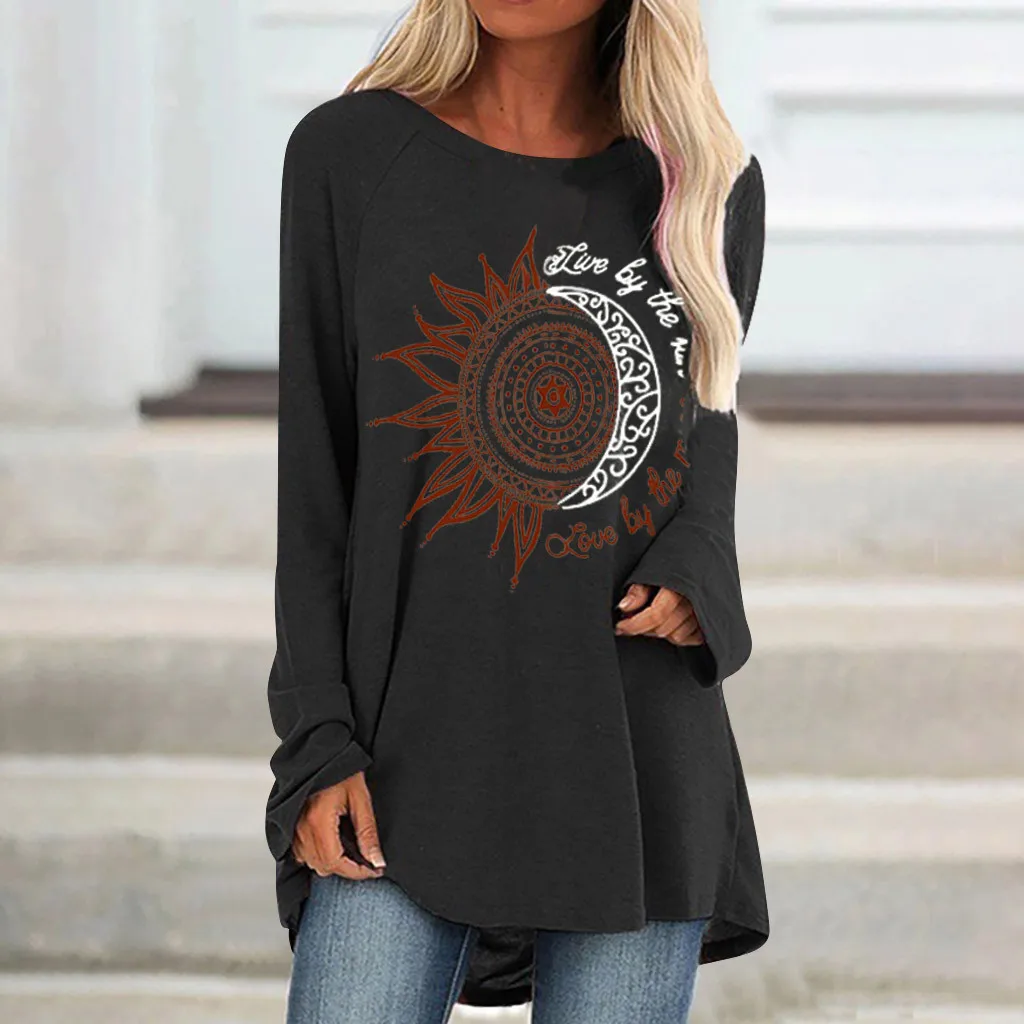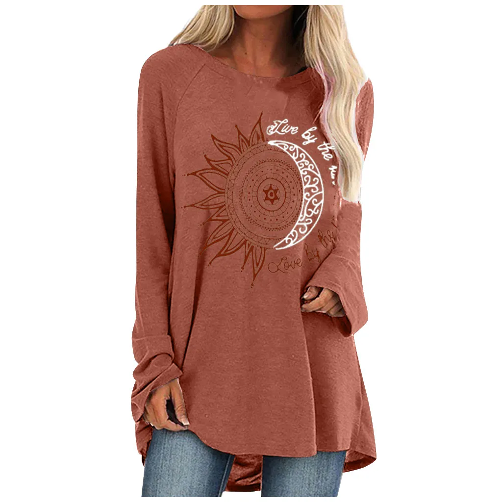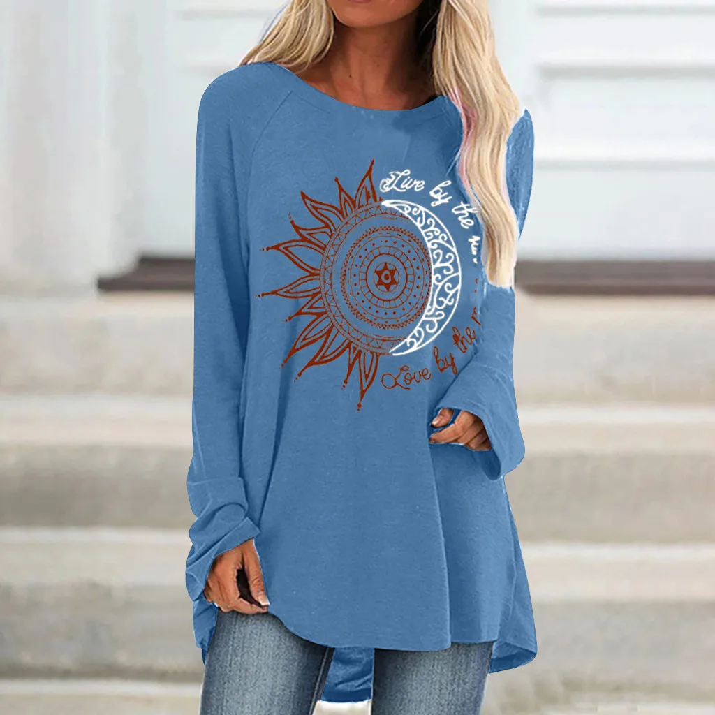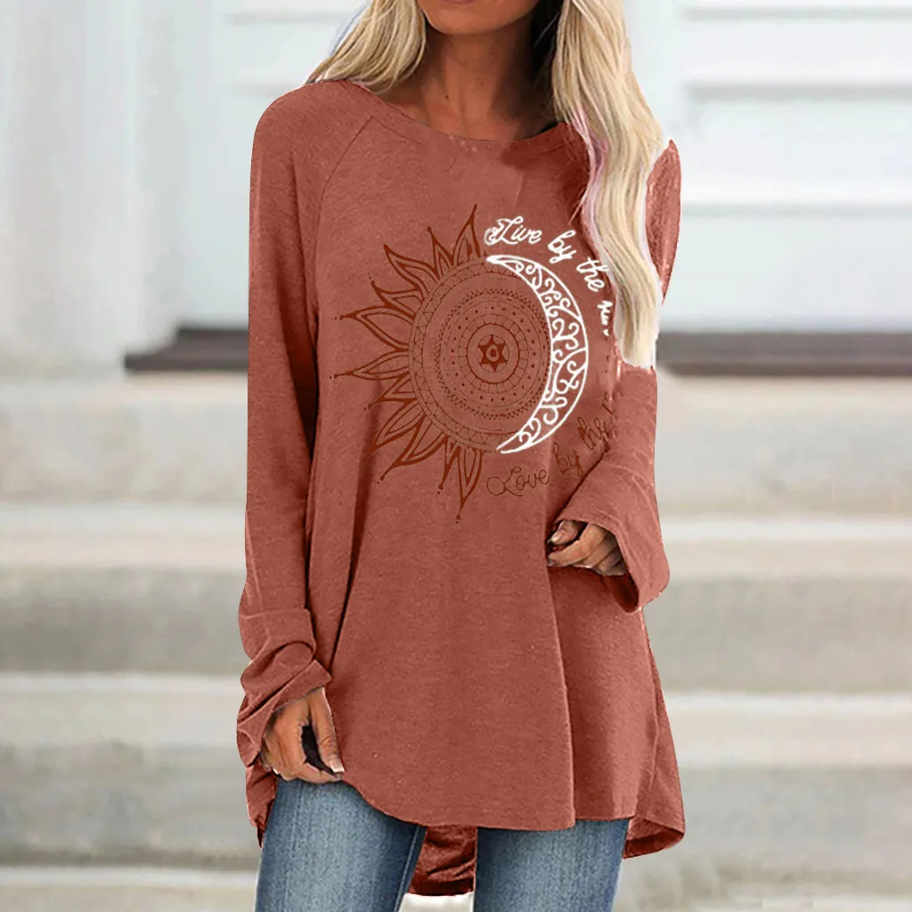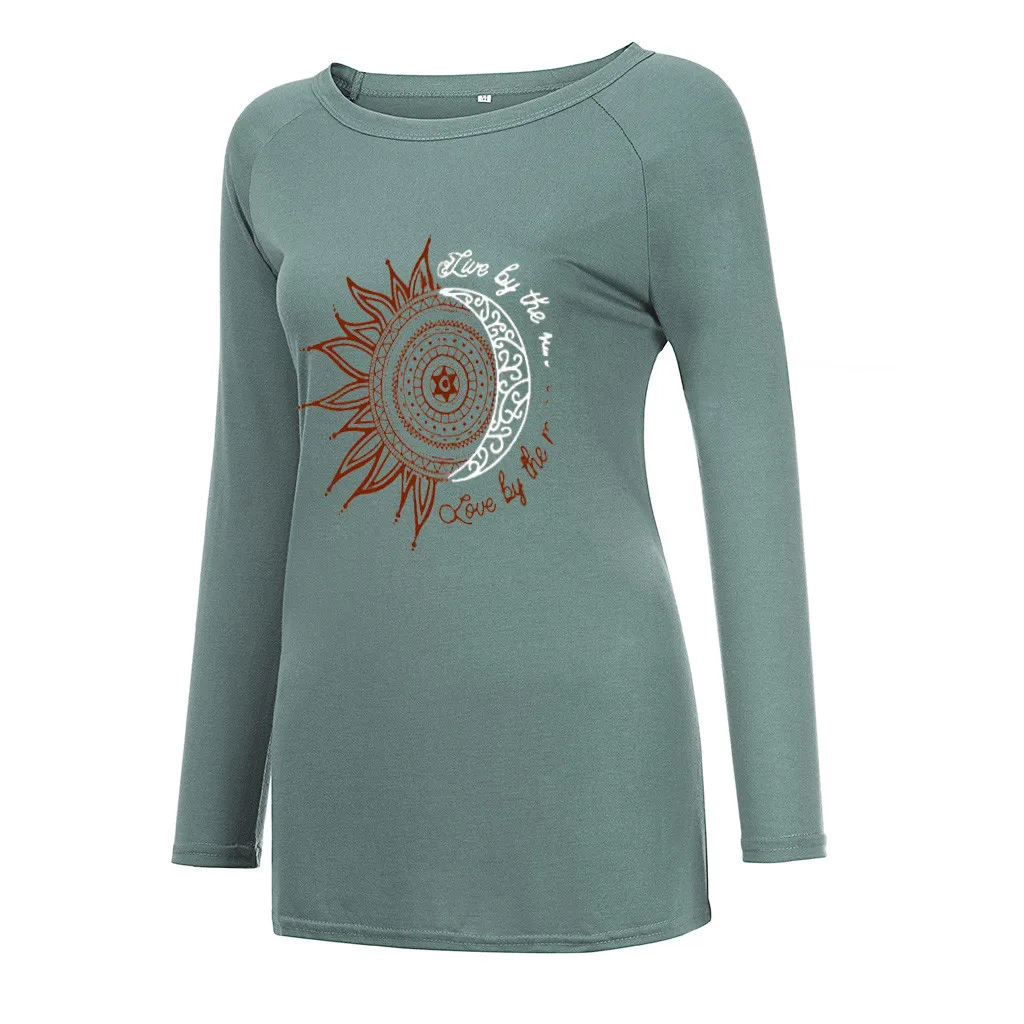 Женская модная повседневная свободная футболка с круглым вырезом и длинным рукавом, топ, блузка, пуловер