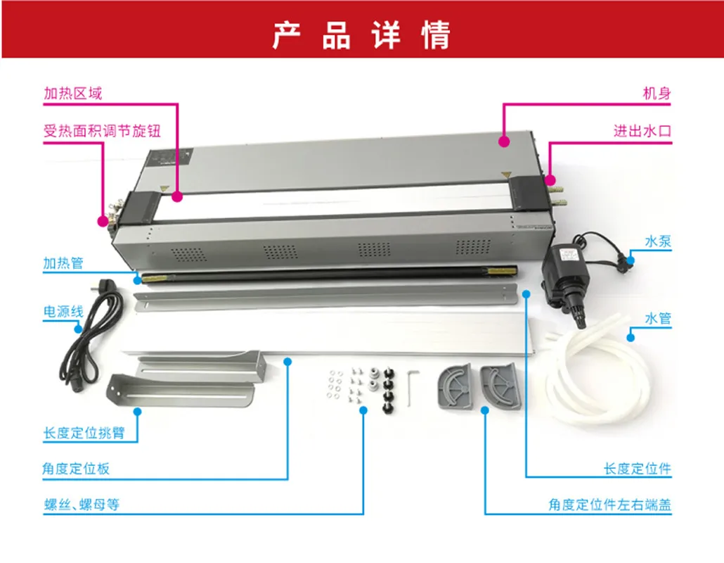 1. Температура регулируется во время 0-600 ° C, согласно различной толщины листа. 2. Применяется передовая инфракрасная технология нагрева и система охлаждения циркулирующей воды, обеспечивает быстрое охлаждение. 3. В зависимости от материала и толщины листа, ширина нагревательных зазоров может регулироваться от 0 до 20 мм. 4. Стандартная конфигурация: водяной насос и водяная трубка 5, это обновленная версия: оснащен длина и под разными углами, с регулируемым углом наклона от 0-160 градусов, длина регулируется от 40-330 мм, стандартизация производства продукции, чтобы удовлетворить потребности массового производства