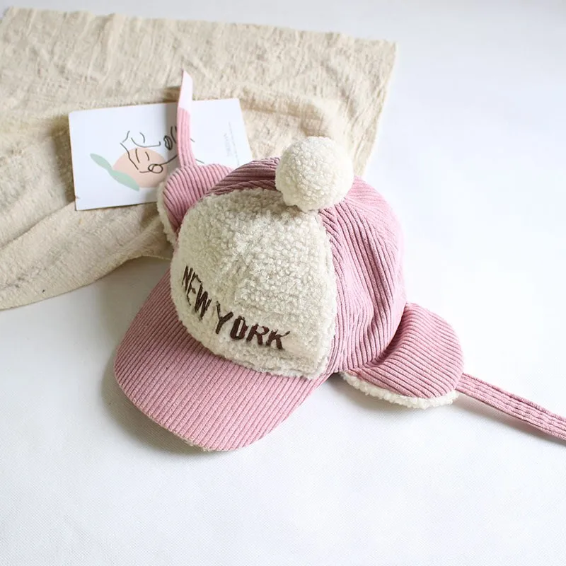 Детская шапка; Милые шапки для малышей; Бейсбольная кепка для мальчиков и девочек; Сезон осень-зима; Теплые наушники из овечьей шерсти; Вельветовая Кепка с вышивкой