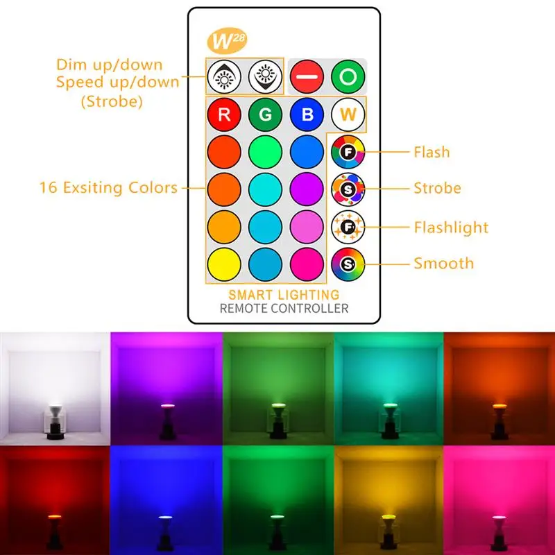 16 видов статических цветов можно установить с помощью кнопок регулировки цвета на контроллере, легко управлять. Вы можете выбрать цвета, которые вам нравятся в разных случаях. Более удобно управлять светильник с помощью ИК-пульта дистанционного управления, один контроллер может контролировать более одной лампы!
