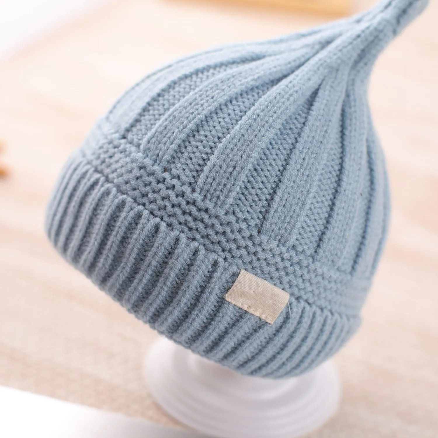 Вязаная шапка; Милые шапки; Сезон осень-зима; Новинка; Однотонная шерстяная шапка; Детская шапка с острым носком; Теплая вязаная шапка в полоску; Эластичная шапка для девочек