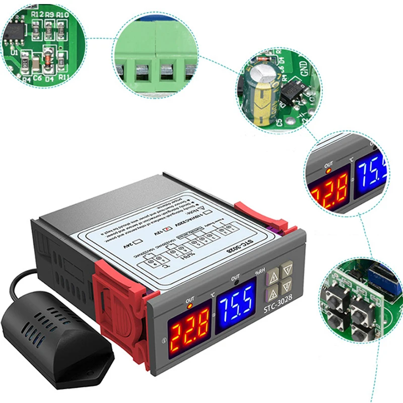 <Двойной дисплей: микрокомпьютер интеллектуальный цифровой дисплей термостат, двойной дисплей и температура.