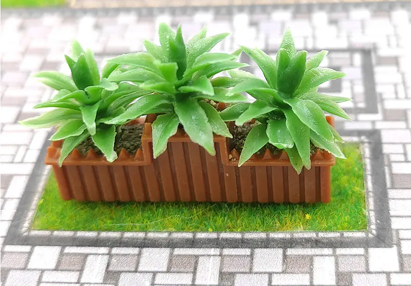 Flower bed is a common urban landscape greening element, often placed on both sides of the road, near the platform, park, courtyard and other locations and places, adding a sense of flowers and clusters to the environment. In the miniature simulation model flower bed produced by fangcunjing, a typical convex flower bed style is selected for miniature. The overall length is about 30mm, and the highest height with flowers is about 25mm.