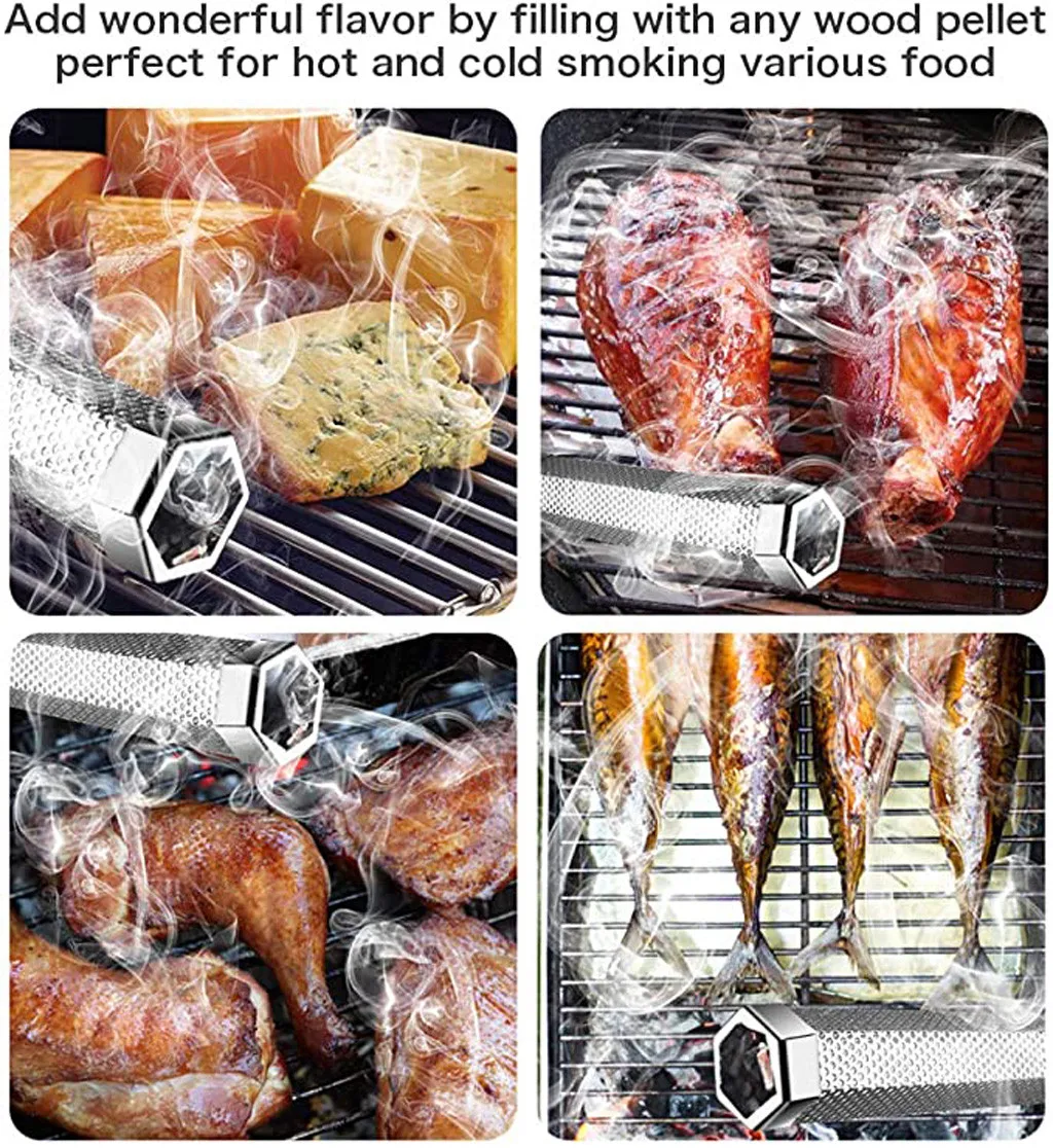 Эта дымовая трубка идеально подходит для добавления прекрасного аромата курения во многие типы Продуктов питания: мясо, сыры, овощи, орехи, бекон, курица, соль, бургер, стейки, Свинина, хот-доги, колбасы, фрукты, кукуруза и многое другое!