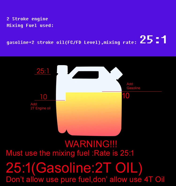 Топливо:Смесь бензина и смазочного масла (25:1);