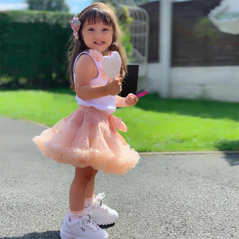 Материалы: 95% хлопок, 5% полиэстер и мягкая сетка. Упаковка: комплект из 2 предметов с юбкой-пачкой для маленьких девочек.